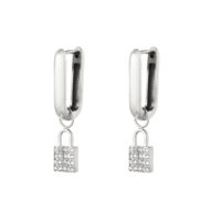 Σκουλαρίκια από ανοξείδωτο ατσάλι με κλειδαριά και μικρές πέτρες ζιργκόν.